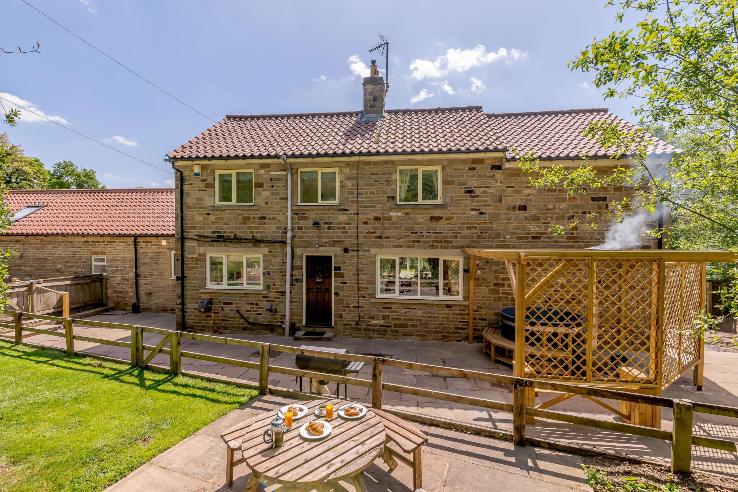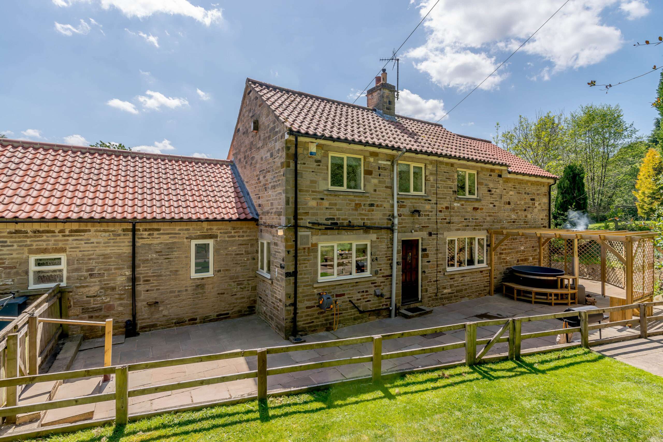 Perfect for intimate family breaks or days away with close friends, Cote Ghyll Cottage has modern, bright, airy accommodation with fully fitted kitchen, washer/dryer and sleeps up to eight people in four bedrooms. The cottage is dog-friendly, open all year-round and with private parking for two vehicles. The stone-built cottage has a log-burning stive, games room, two private gardens with outside seating, BBQ and your very own hot tub!